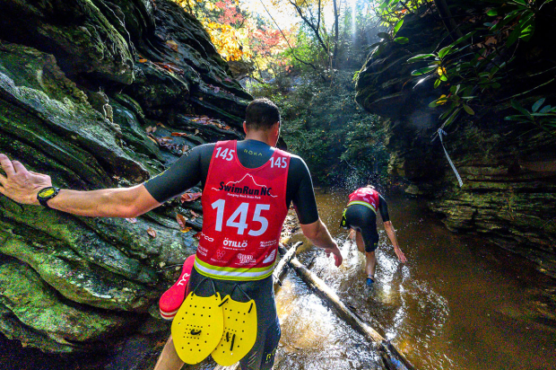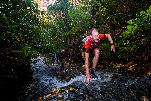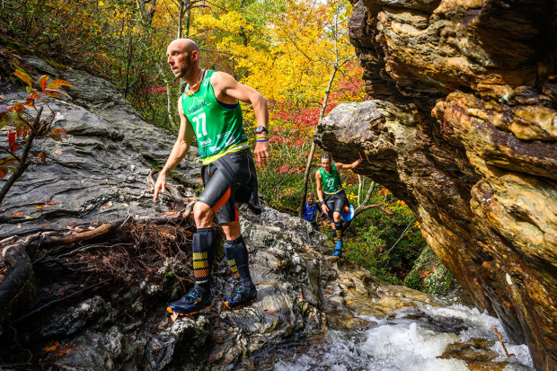 Canadians Art Chasovskykh and José LoMonaco traveled far to race in NC, but they enjoyed the experience and said they will be back again. Here they tackled the Indian Creek ascent just before the famed Window Falls section.
