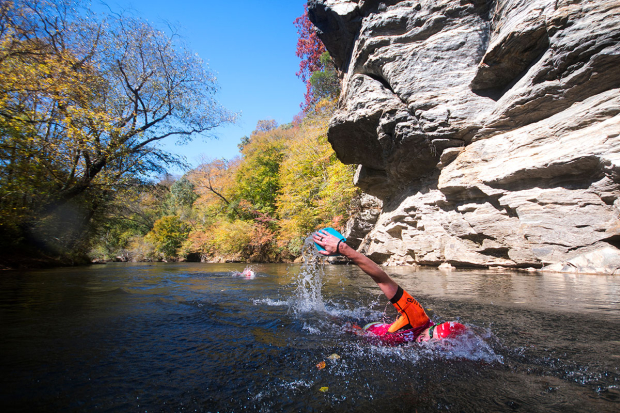 Hanging Rock State Park was in full fall colors. The water temperature of 62 degrees was likely appreciated, as air temps rose to 80 degrees.