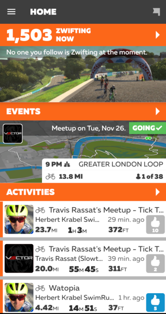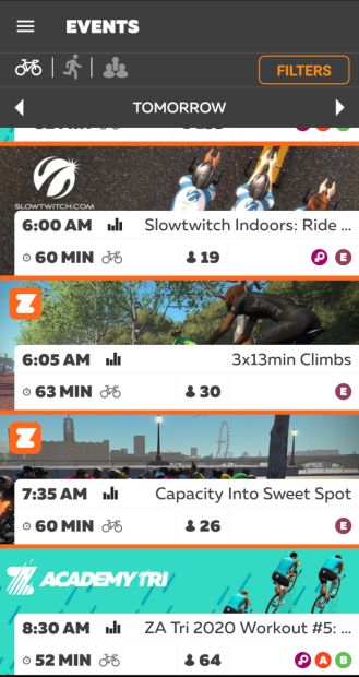 Zwift Companion puts events at your fingertips. At any time, you can look for cycling or running events, and even filter based off the type of event you want to do. Looking for a race or a time trial to test your legs? You can filter by the type of ride and even the category so you can make sure you’re up against people on your level. Maybe you want to join in on a virtual Turkey Trot? You can filter by distance and event type and race off those Thanksgiving calories (or make room for more). Of course, if you want to join in on some of the SlowZwift weekly fun, you can look for those events through Zwift Companion, too. Zwift Companion really makes for a nice way to stay on top of all of the action in the Zwift worlds.