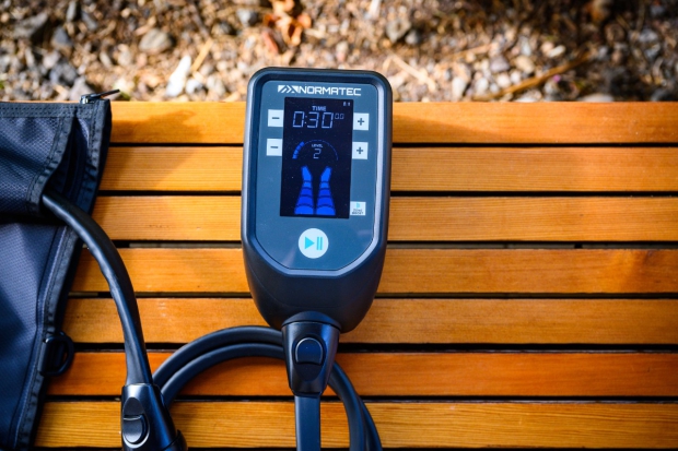 The NormaTec PULSE massage pattern includes an initial calibration phase measuring your leg circumference and ensuring a custom fit before any pressure is applied.