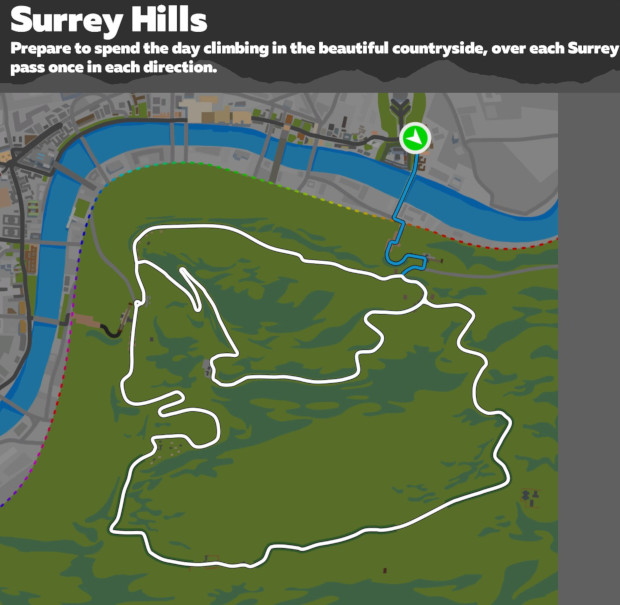 This is the longest route in all of Zwift, with plenty of climbing – matter of fact, you're going to actually do the same route as the London Loop, but you're going to do it 11 times. Are you ready to climb Box Hill 11 times?