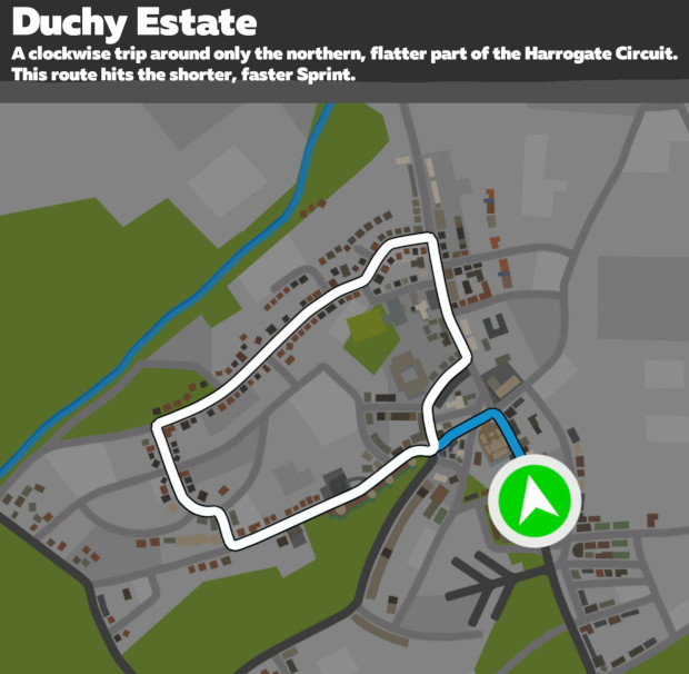 Duchy Estate makes use of the short northern part of the UCI Worlds circuit, staying within central Harrogate for the entire route. There is a short lead-in, and the route is relatively flat, as far as Yorkshire goes. Keep your eyes open for the Royal Pump Room and enjoy the sights of Millionaires' Row.