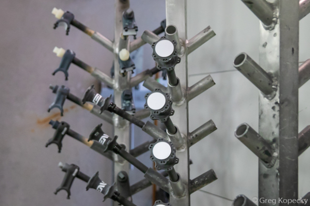 As we moved into a completely different area, we found many different products being produced including carbon stems, and frame components like down tubes, top tubes, and seat stays. Above, we were in a room dedicated to smaller parts production, such as their carbon road hubs.