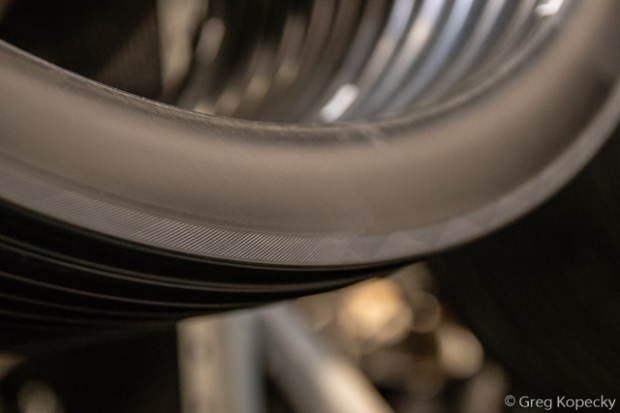 While many new bikes have disc brakes, ENVE has continued to refine and improve their rim braking surface. It has a textured surface that’s molded into the rim, along with a more temperature-resistant resin that has eliminated heat-related warranties.