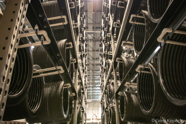 Moving out into the warehouse portion of the building, we found hundreds of finished rims on racks, waiting to be built into wheels or shipped to distributors.