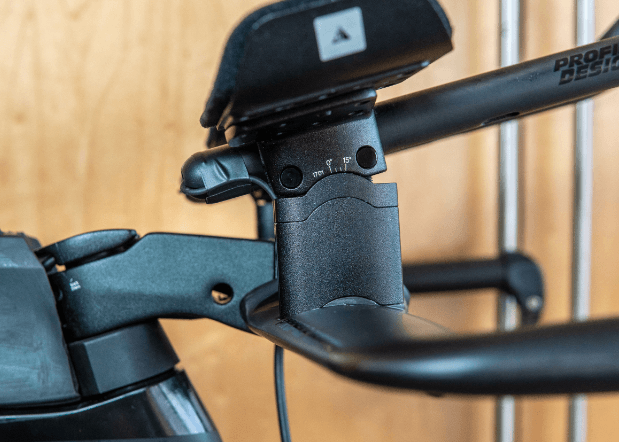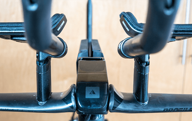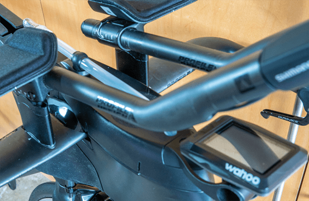 The E-tubes from the shifters exit the back of the aerobar extensions, and, after a dab of electrical tape, tuck neatly into a channel in the back of the risers before disappearing into the bar as well. Profile-Design’s Aeria Ultimate Stem is $159 and Aeria Ultimate cockpit is $1,100. (This was the big financial gulp. But, last I checked PD has a sale going on the Aeria Ultimate stem, so, you can clean up your Speedmax a bit just with the stem purchase if you’re upgrading it to electronic.)