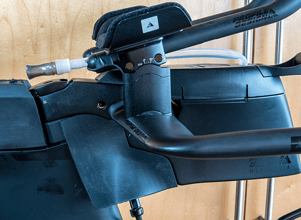 The hydration system isn’t a good match for that side pull brake, which you can’t really see in Jay's pic because the cable’s entry is on the other side of the bike. But you can see it in the pic above. It’s best on a bike with disc brakes, or on a bike with a center pull brake. As it happens, the PD Aeria Ultimate stem and a TriRig brake and this hydration system make a terrific match.