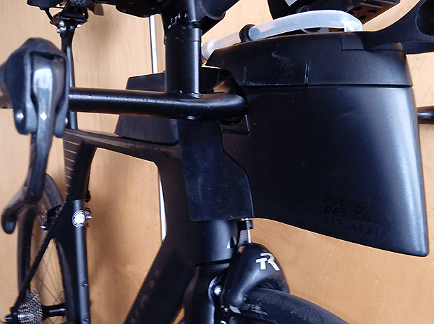 Perhaps the final touch of Clark’s “super” transformation is the cape. Here it’s the Profile Design Aeria Hydration system that is paired to this front end. On the underside of the Aeria stem are two, small threaded holes. After screwing in an unassuming mount, the hydration system simply snaps into the place making this bike nearly faster than a speeding bullet. Just note that if you're going to go this route, get the faceplate that goes on PD's stem. (The Cervelo P-Series makeover, referenced just below, has a description of this.)