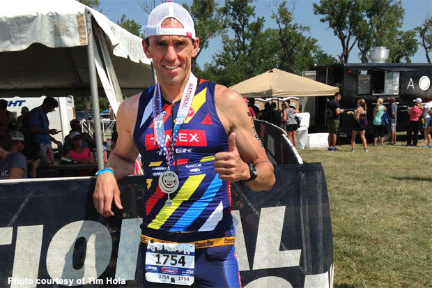 The ever-speedy Tim Hola taking stock of his run metrics.
