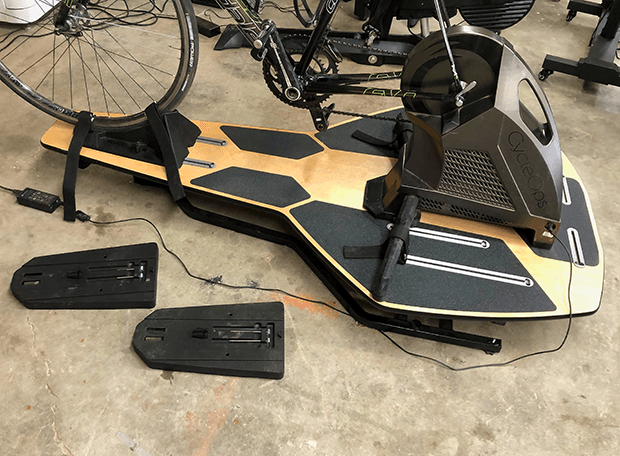 You place your smart trainer on this platform, to make that trainer feel more like you’re riding out and on the road. That's the idea. Does it work? Yes. But not in the way I expected it to.