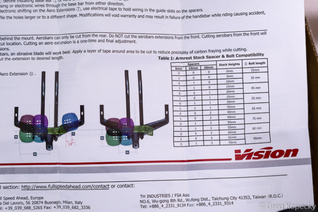 The instructions include a handy table to help you select the right parts for your particular arm pad stack height.