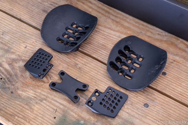 The arm cradles have a large surface area and a bevy of mounting holes.