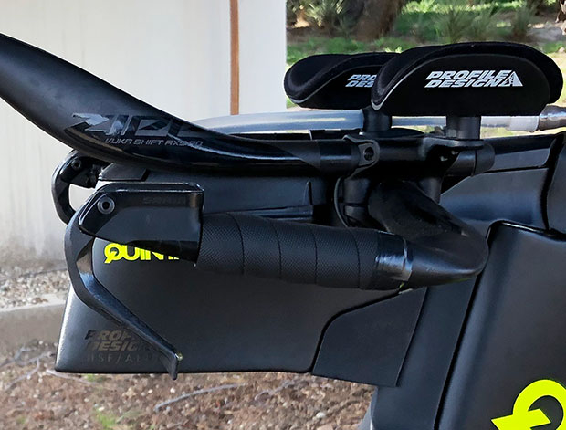 But I swapped out the Zipp aerobar clamps for a Profile Design Supersonic bracket kit, and on this bracket I put PD’s Ergo Armrest Kit. Inside of this I replaced the Zipp Vuka Shift AXS 90 extensions. But there was a problem.