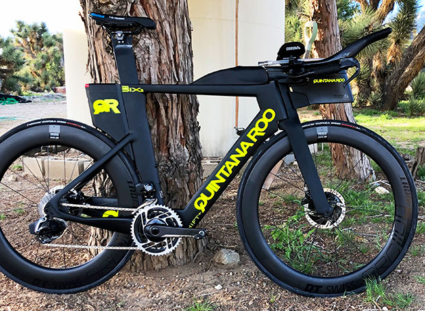 This bike’s geometry shouldn’t change. There’s nothing to change. It fits right and it handles right. More importantly, it fits and handles the same way regardless of what QR tri bike you buy, whether PRThree, Four, Five or Six. This bike, the way I’m showing it here, would probably cost around $10,000, but I hopped aboard a PR-series bike in Kona a year and a half ago (in the image I’m riding with the company’s owner, Peter Hurley) and that bike rode exactly the same as the bike I’m featuring here. The bike I rode in Kona you can buy for near to $3,000 right now.