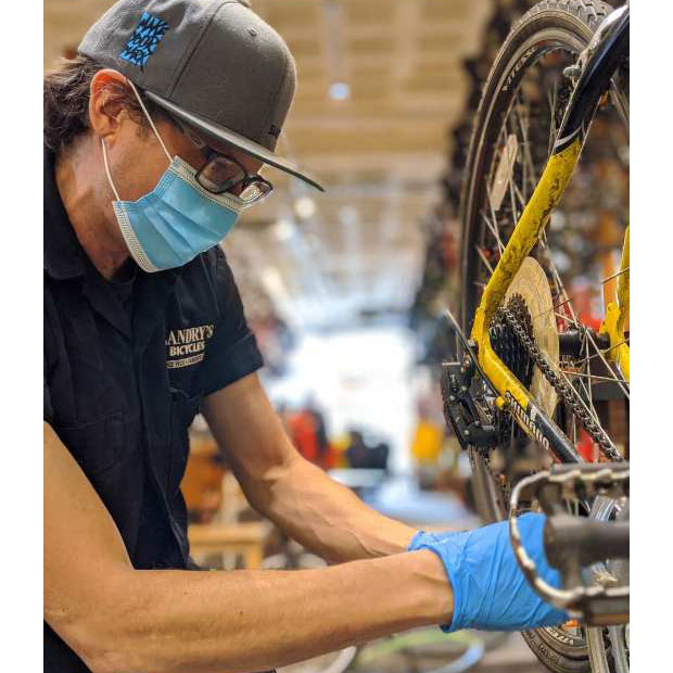 Another area where Landry’s is historically very strong is its attachment to bike advocacy. It occurred to me that now, more than ever, there is a window open for advocacy groups, to keep some of these roads as bike thoroughfares. “I do think our advocacy groups are going to lean on representatives,” said one shop owner. “Now’s a good chance to see what the streets look like without cars on them. Streets without cars are good for everybody.”