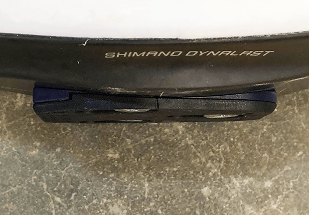Not to worry. Speedplay’s cleat kit includes a second set of (purple) plug-ins that replace a set factory installed plug-ins, giving the adapter plate a more concave aspect. It takes just seconds to pop out the pre-installed purple inserts and pop in the more concave inserts. This swap-out makes the cleat fit the bottom of my Shimano shoe perfectly as you can see.