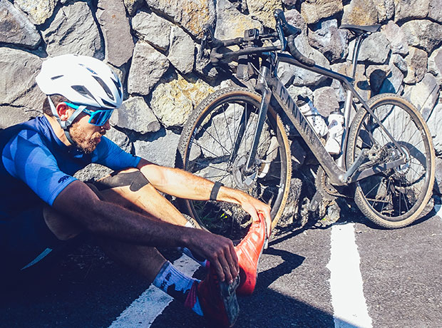 I asked Tyler what he rode, because if there was just a single bike used (there was) this ride presents a gearing and tire conundrum. The first mile of Tyler’s day is a steady pitch of between 25 and 35 percent. That road is only rideable because it’s paved. Barely. So, what gears?