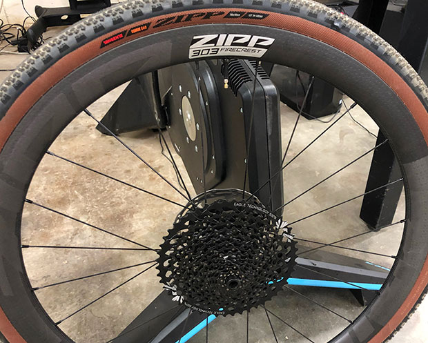 Anyway, here it is, it’s set up for 1x, with an Eagle 10×50 12sp cassette, with a 40mm Zipp gravel tire.