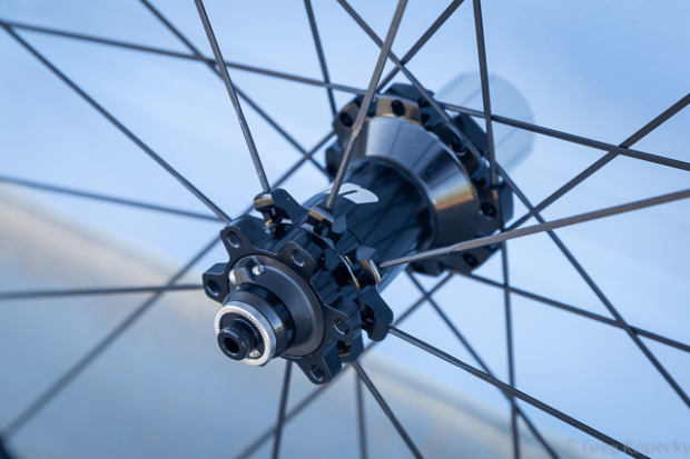 Vision offers both 6-bolt and Centerlock hubs for the Metron 55. Our test wheels came in 6-bolt configuration, and they even sent some of their very own rotors. Vision is currently in the process of developing their own Centerlock-compatible rotors.