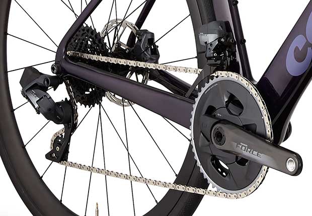 The Caledonia-5 is the flagship, and when it's built with SRAM it's eTap AXS, in either Red or Force. I haven’t so far found Force AXS to be enough of a downgrade to want to spend more for Red; Force AXS is just great. You can also get this bike in Shimano Di2, both Dura Ace and Ultegra (8050 and 7050), or Ultegra mechanical.