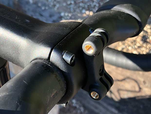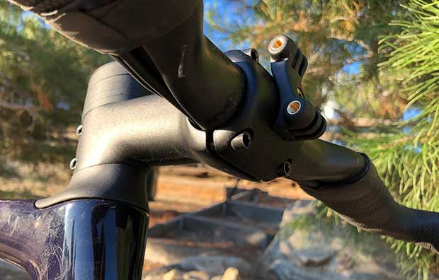 If you read Matt’s article, you’ll see that Matt has a dual-front Lezyne mount system onto which is affixed a head unit above, a Lezyne light below, and it all uses a GoPro style mounting platform.