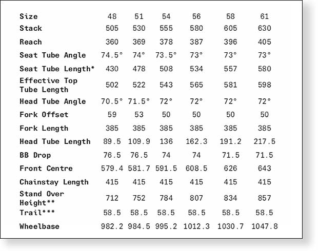 The upshot, fitwise, is this bike is kind of 2-bikes-in-1. It’s size-58cm for a guy my size, if you ride a slightly higher front end. It’s a size-56cm for a guy my size if you ride a lower front end, and you can get away with it because of both the longer wheelbase (it’s got a semi-longish chain stay at 415mm) and especially the longer front/center.