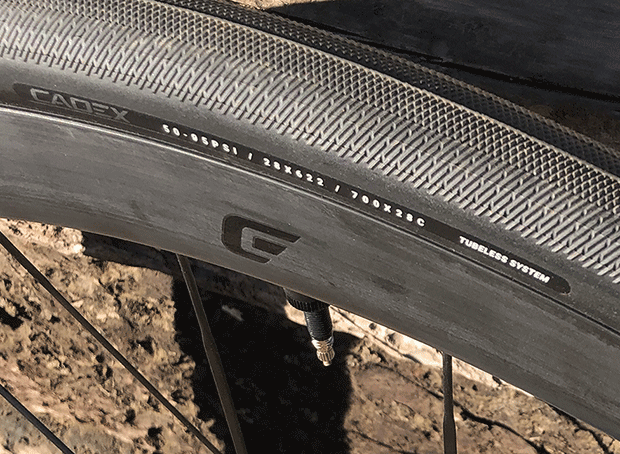 There are some special things about this tire, but more so about the whole CADEX wheel/tire combo. I made a little video a few weeks ago of this, couple of minutes long, embedded below, which addresses a peeve of mine. There are – let’s face it – technologies you’re going to get, whether you want them or not. Among them are hydraulic disc brakes and tubeless tires. You and I can whine from here to Dubuque, but this is the tech that’s coming. Me? I don’t mind this. However, what gets lost in the shuffle is how to use this tech.