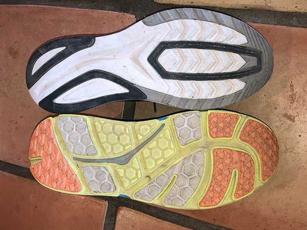 Also, you’ll note that both the HOKAs and the Endorphin Shift eschew that carve-out in the arch that seems like a good idea but in my experience never is.