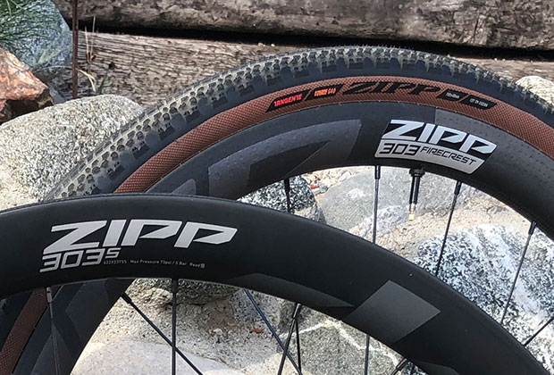 I would say that HED (and maybe the now-defunct American Classic) is the company most deserving of credit for widening the internal bead width, and ENVE was either right behind HED, or right there alongside. This is the width of the wheel I’m talking about, the distance between the rim walls, inside-to-inside. That internal bead width for road used to be 15mm, and as we’ll see below one of your favorite tires – the Corsa Speed TLR – was built assuming a rim with a 15mm internal bead width. Then companies started widening that distance, and making wider tires to match. The old Zipp 303 Firecrest was (is) a heck of a wheel, a real breakthrough wheel. But that internal bead width was 19mm. Wheel companies then started making rims with internal bead widths in the neighborhood of 20mm and 21mm, and you could reasonably use these as gravel wheels, for tires up to and beyond 40mm in width, assuming the wheel was strong enough. The new Zipp 303 line (below) has internal bead widths of around 23mm.
