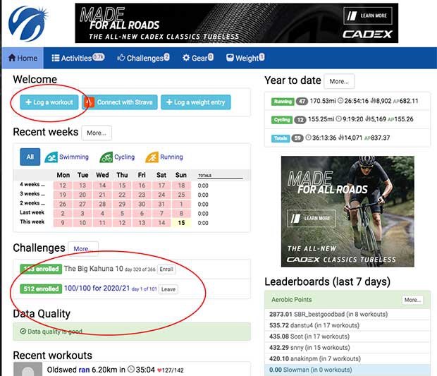 The engine for this Challenge is our Training Log. We have a no-charge Training Log, nothing special about it, but this Challenge pulls conforming workouts from the Training Log and appends them to a "Leaderboard." Let me explain how this works, and where you find it all.
