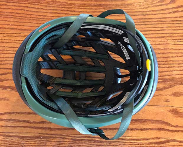 This is a moderately high-end road helmet, selling for $250. I don’t care if a helmet costs $369 or $69. I am – truly – pickier about my socks than my helmets. But like you all, I have a big investment whenever a particular thing doesn’t work, whether saddles, shoes, helmets, and that’s the state I was in.
