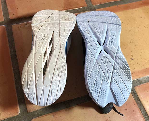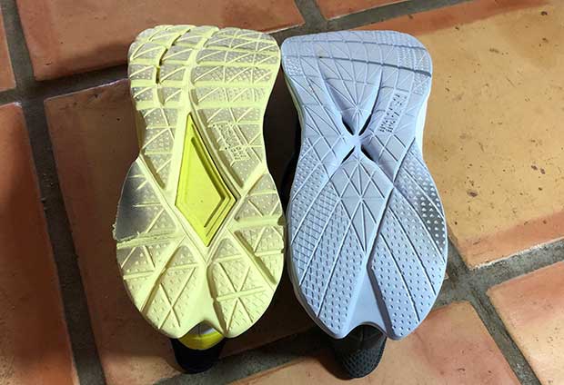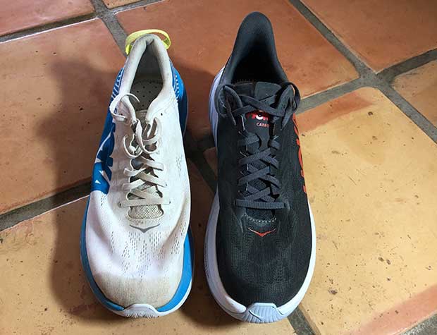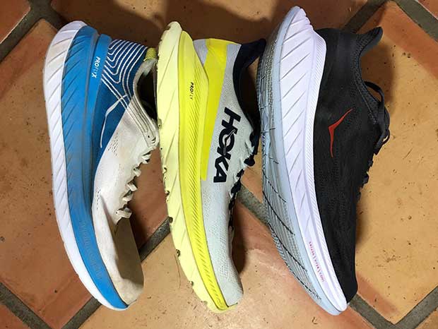 So, displayed here is my already-run-in Carbon X 2, and I’ll compare these with recent HOKA models to show you what it seems to me this brand is up to.