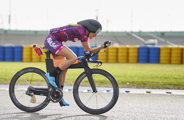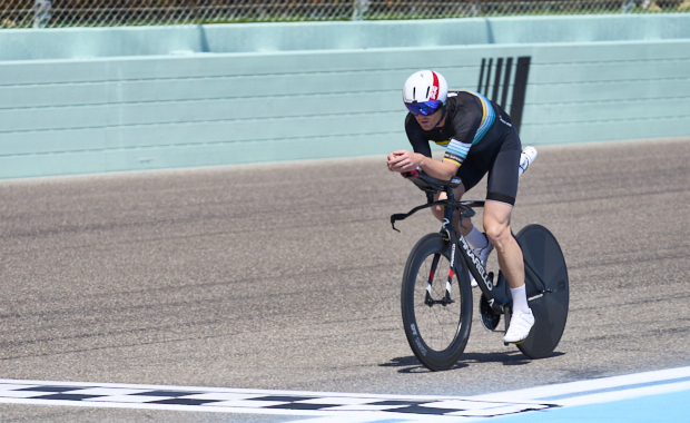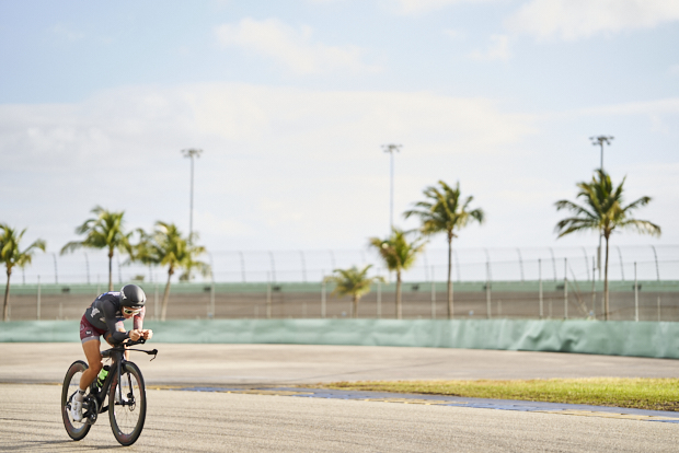 Ben Kanute was moving very fast around the corners in practice. Unlike Daytona, the bike course at Miami features the infield road course.