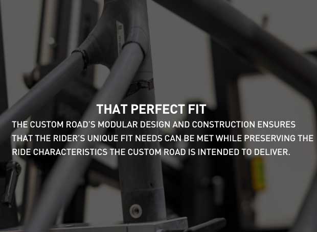 This is a full custom bike, one of a kind, your kind, made for you. It is not a monocoque design. If you look at the slide below, what you’ll see is a reference to “modular” against a silhouette of a seatstay/seattube joint. It is, in a way, reminiscent of the GURU factory’s process in Montreal, back in that custom bike maker’s heyday.