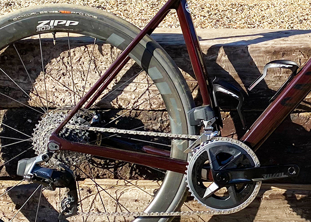 What I don’t know is what the mullet "groupset" cost would be. I ride this on my gravel bike, but it’s Force/GX Eagle 1x and I have heard that this new mullet "groupset" (in quotes because it's a half of one groupset and half of another) will cost somewhere in the range of $1,400. But I’m not sure. This groupset would consist of Rival eTap AXS brakes, rotors, shifters, crank and BB, along with GX Eagle rear derailleur, chain and that big 10-50 (or thereabouts) cassette.