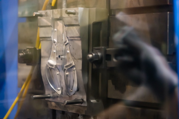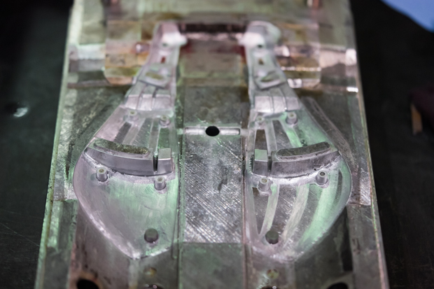 The factory contains a full machine shop, with rows of CNC mills and lathes and injection molding presses (among other things). Also in the building are the CAD designers who design the product pieces and translate the thought bubbles into CNC code. Above is an injection mold and below is what comes from that mold.