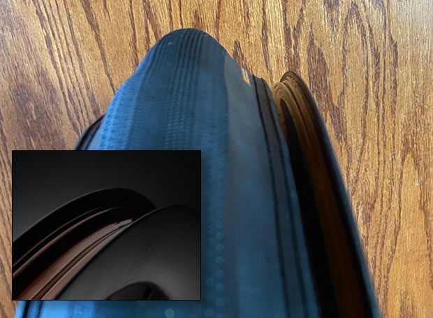 There is some height to these rim walls, and the tire needs to scale the rim wall to mount. Once you get the initial tire bead over the wall, that bead must sit in the well of the rim (see above). If that bead doesn’t sit in the well, good luck getting the other tire bead over the rim wall. Installing Vittoria’s road foam liner is like putting a tube in a tire; except it’s like putting a 650c tube on a 700c wheel. The liner hoop is elastic, and is on significant stretch when it’s on the rim. This means the tire bead is fighting for space in the well of the rim that the foam liner sits in. Imagine one dog walking over to the dog bed, and the other dog is curled up on that dog bed giving the first dog stinkeye. That foam liner is giving stinkeye to the tire. It wants that well.