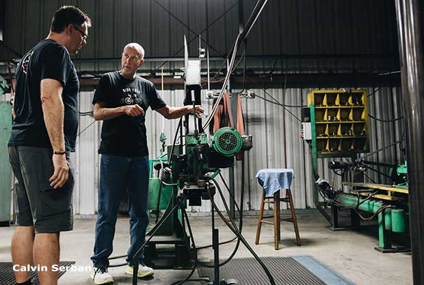 What I love about factories like these are the often custom retasked dedicated machines that only fill a particular use, such as the (probably 1940s vintage) horizontal mill that only threads bottom brackets for the T47 BB standard after a Litespeed frame gets made. This post-welding machining reminded me of Hooker’s factory, where a lot of my bikes were made in the late 80s and early 90s, where he machined in the dropouts of his Hooker Elite frame after the frame was welded and heat treated (it was the only way – Gary Hooker felt – that he could make a perfectly straight frame). Gary used to buy a lot of old mill heads at auction, setting them up for dedicated chores, and I saw some of that at the Litespeed plant.
