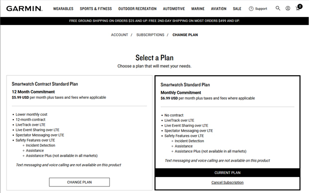 The other cost is the LTE subscription. Garmin offers two plans in the U.S.: a monthly plan with no contract for $7/month and an annual plan for $6/month.