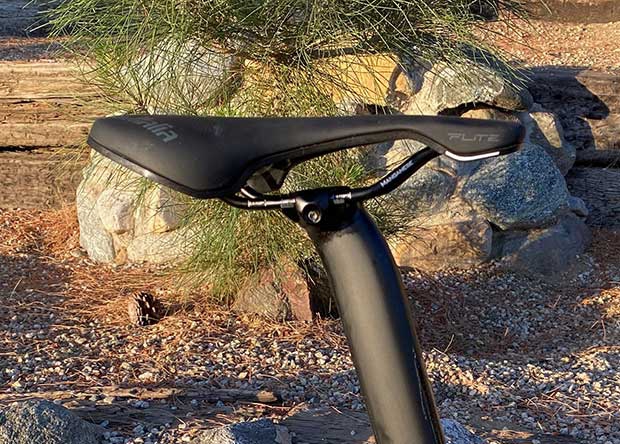 I first tried, the Flite Boost Gravel Superflow, in 135mm width. Good, but not wide enough. Then the same saddle in the 145mm width. It supported me, but the contour along the top was flat, and I just don’t do as well with flat saddles.