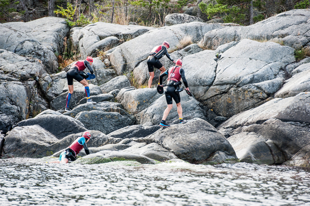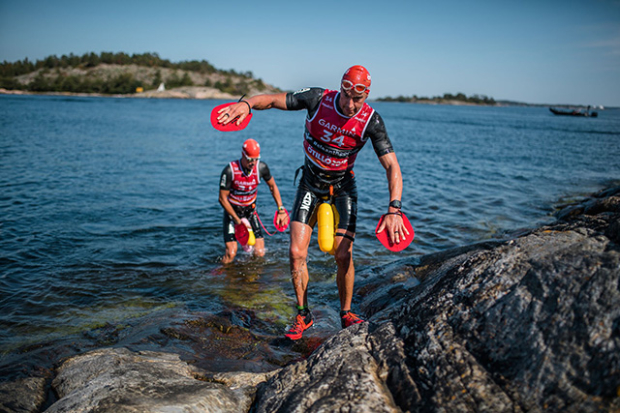 The leading mixed team of Desirée Andersson and Victor Dahl heading towards another swim. Sometimes you can see the the next swim distance ahead and where the exit is, but at other times you can't.