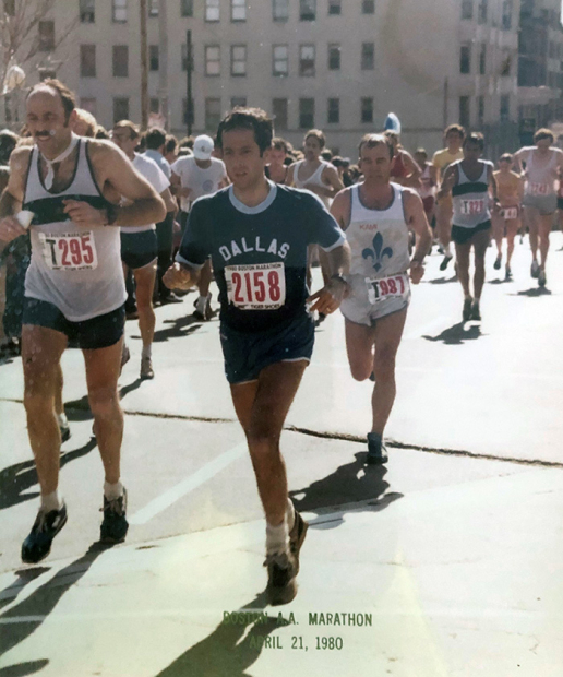Mike: I was a wrestler in high school – all 93 pounds of me. Our wrestling coach insisted we compete in a fall sport. It was either football or cross country. The decision was obvious. However, I was not much of an athlete and quit the cross country team after four weeks. The coach reluctantly let me back on the team the next year and I worked my way up to the seventh man on the Varsity Team as a senior. It was a 5-man team. 10 years later as my business career was booming and so was my desire to eat at great restaurants, I started running to burn calories maintain a healthy weight. That led to running my first marathon in 1978 and qualifying for Boston in 1979.