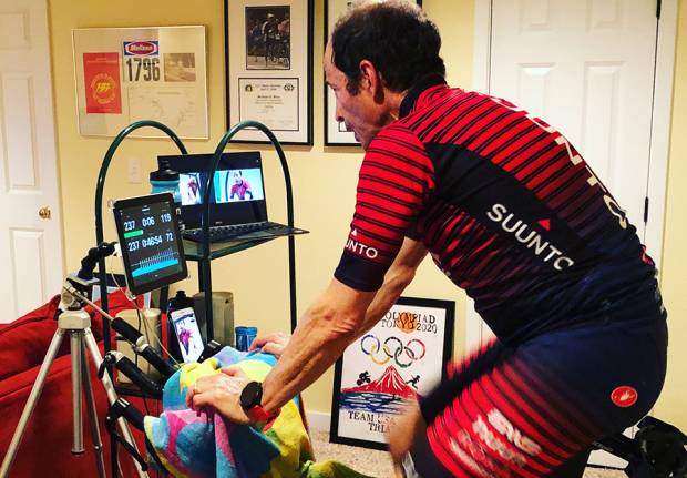Mike: I love riding outside. I live in Boulder, Colorado and have beautiful canyons, mountains and plenty of flat farmland outside my front door. However, I try to ride two to three times per week on my Wahoo KICKR for 60 to 75 minutes. I use an iPad as my control panel, and I have a coach that programs my workout remote and gets immediate feedback when I complete a workout.