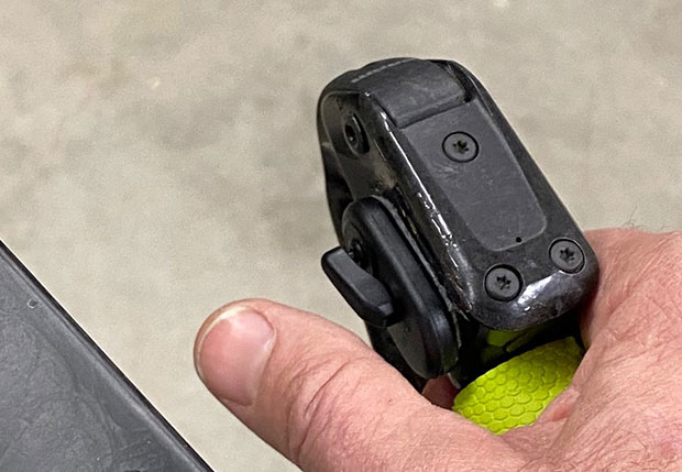 I chose to use my own 2-sided tape, which I rely on with confidence, though I’m pretty sure SRAM’s included tape is fine. If you see below, this is where I placed these Blips on my pursuit shifters, and they’re here, on the side of the body of the shifter, to keep from the inadvertent shift that always seems to happen if I place the pursuit shifter on the bar itself.