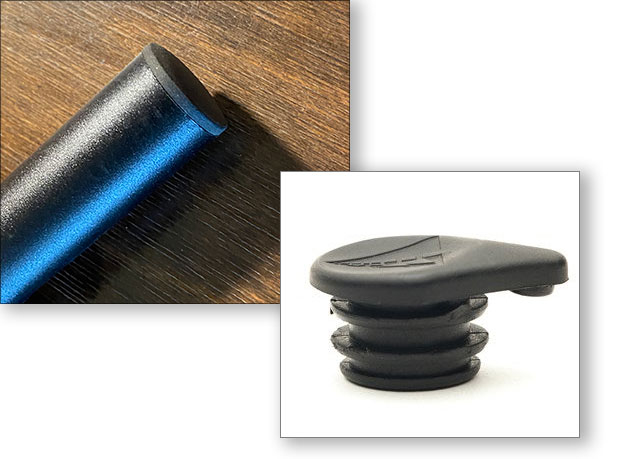 One solution is to epoxy, or 2-side tape, this Blip to a bar plug. But that’s not straightforward. Most of the included plugs with clip-ons are half-round and the plug where you affix the Wireless Blip needs to be flat. Even this one below (left) has a slight bevel to it. You can’t just put any old handlebar plug in the extension because the ID of a typical road bar (which is what most handlebar plugs are made for) is about 22mm (depending on the thickness of the handlebar material). The ID of an aerobar extension is more like 18mm or 19mm. Most handlebar plugs won’t fit in there. Here’s an interesting one, below right, from Profile Design. It’s not exactly flat but has a contour that roughly matches that of the Wireless Blips. I think I’m going to get a set of these if I can and try to use them as my bar end Wireless Blip mounting platform.