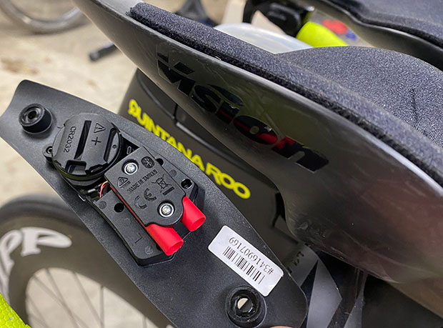 Here’s one way a Wireless Blip surely fails: It falls off the bike. In my opinion, the cages or mounts that SRAM makes for these are not adequate for use in triathlon. For example, in the pic above is where SRAM says you could put the Wireless Blip, versus where I placed it on my tri bike. I can pretty well promise you that if you put it right on the pursuit bar, where your hand goes, you’ll be shifting your bike by mistake, and often. I have mine mounted with a very aggressive 2-sided tape on the side of my pursuit lever (and SRAM does include 2-sided tape with these shifters). What requires a bit more strategizing is the bar end shifter mounting. Perhaps SRAM’s view is you just put that included clip around the extension. But then I’d have to add quite a bit of length to that extension. In the case of the Vision Metron TFE Pro extension's I have on my tri bike the length of the hand-hold is prescribed. My best bet is to put that shifter where SRAM already knows that shifter should be: as part of the extension plug.