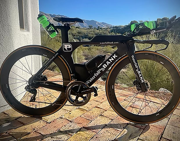BA: I had assisted them with some business struggles they were having and learned how challenging cycling companies were for the triathletes. The lack of funding in that area seemed insane to me. Heather’s bike [the Cervelo P5 Disc pictured here] will certainly be a focal point of many races and the idea that a company wouldn’t pay a reasonable amount to have their name on their own bike seemed like a great opportunity to say to the bike world, "pay up or you may be humiliated and have someone else’s name where yours should be."