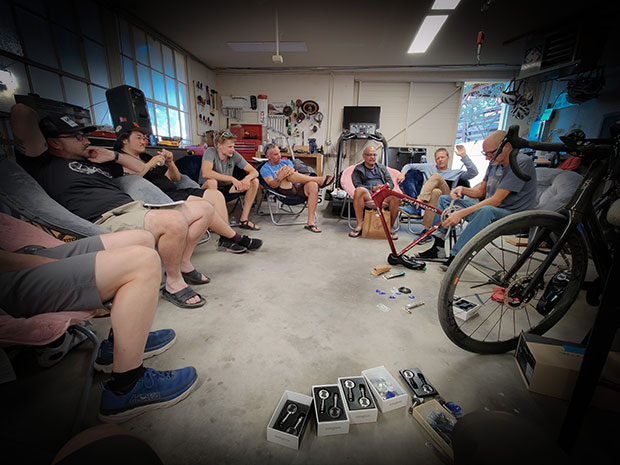 On Monday and Tuesday we teach road bike fit. On Thursday and Friday morning it’s tri bike fit. Friday is elective. It’s mostly practice-makes-perfect (people taking turns fitting and getting fit, to get the protocol down). A lot of folks peel off during Friday to catch flights out. Some remain and fly out Saturday.