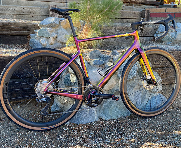 CADEX also launched new tires today, each 40mm, one with a finer tread and one with a little more bite. They’re great. They’re fine. If I don’t sound over-the-moon impressed, that’s me, not the tires. Where I ride, what gravel means to me is either pavement or full MTB, all smooshed into the same loop. That is best ridden – I find – with a 650b wheel and a 53mm (or so) tire. Which isn’t either of these tires. So, the tires look and ride great and the tires and wheels really dress up this Cervelo Aspero, do they not?