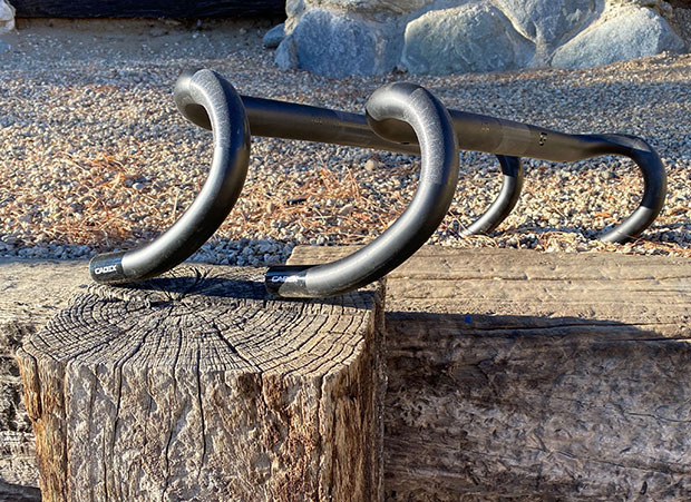 CADEX launches, or relaunches, the AR handlebar today. I say relaunches because I wrote about this handlebar last October. The handlebar is made in one piece – not hooks bonded to tops – which is rare, and allows this bar to be a sub-200g weightweenie’s delight. But what I like about it most is the geometry: 3° flare, very tight 70mm reach and 115mm drop. Here’s the thing about this handlebar: I have it on a couple of my gravel bikes; and I’m putting it on my climbing bike, that is to say, on my Cervelo R5 that is a fully road as road can be. Not “all-road.” Not a tweener bike.
